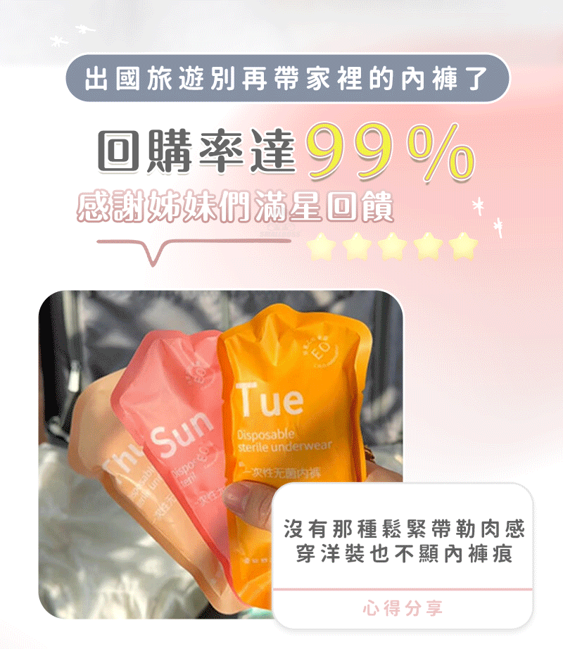 11分鐘前純棉無菌日拋內褲 - 【四套𝟒𝟎件】團購嚴選,數量有限NT$999