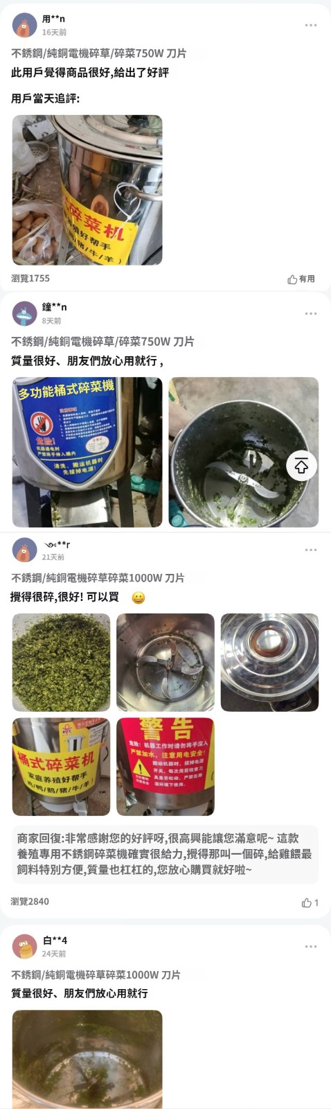 5分鐘前【養殖好幫手】多功能碎菜機,碎菜只需1秒,廠家直銷,貨到付款 量大優惠! - 塑料桶多功能碎菜機--NT$1990