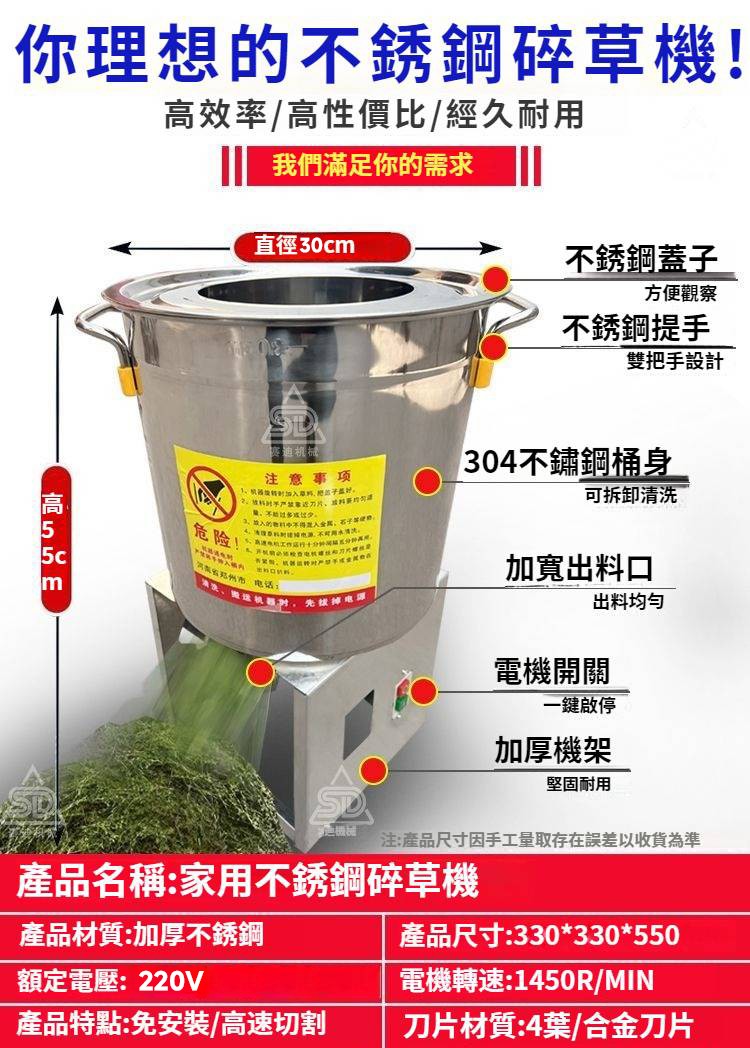 7分鐘前【養殖好幫手】多功能碎菜機,碎菜只需1秒,廠家直銷,貨到付款 量大優惠! - 600W不鏽鋼台式碎菜機--NT$2990